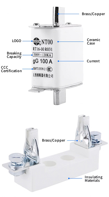 Porte-fusible à lame en céramique basse tension personnalisé NT00 AC 160A 500/690V, haute rupture