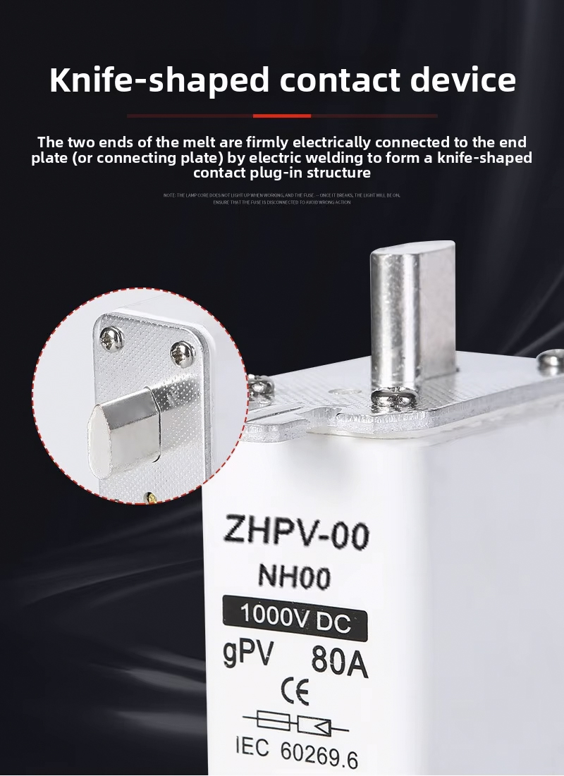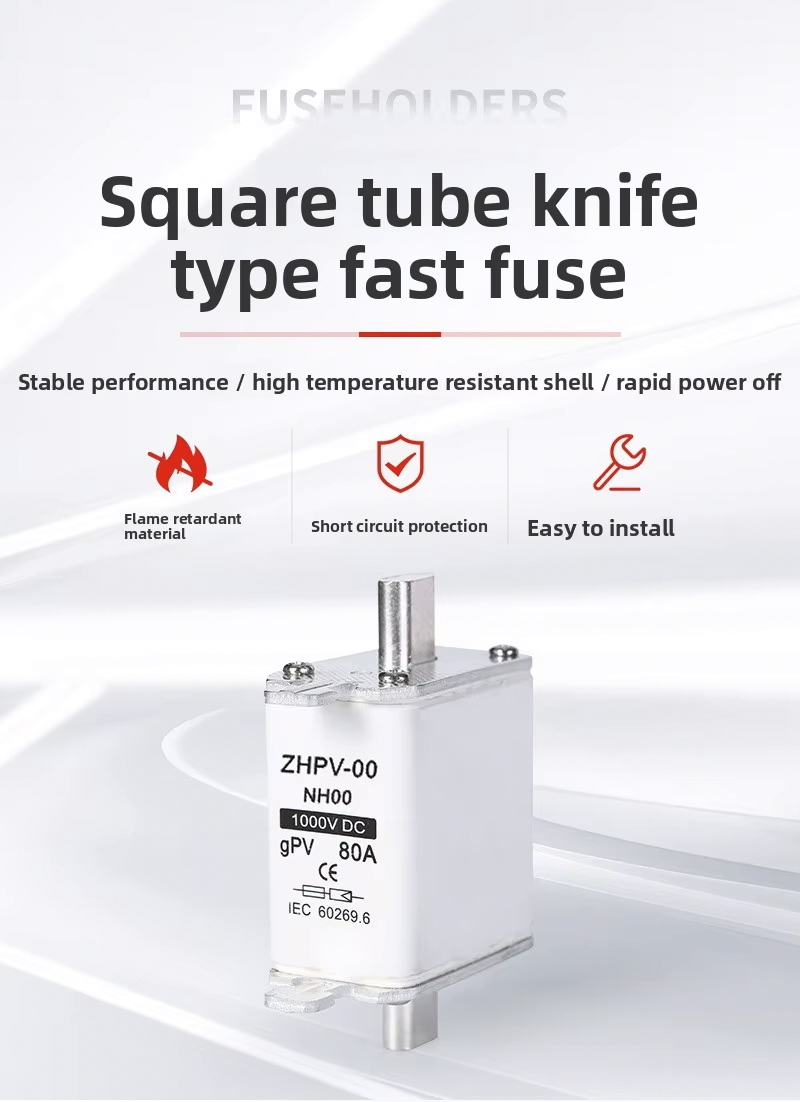 Fusible photovoltaïque à couteau basse tension IEC NH00-1000V, capacité de rupture en plastique 80A 6ka