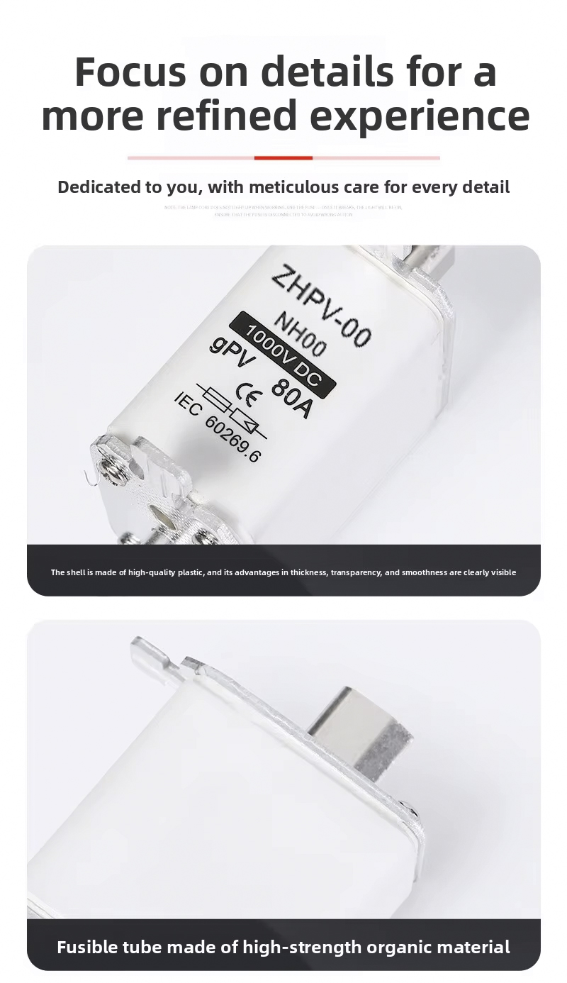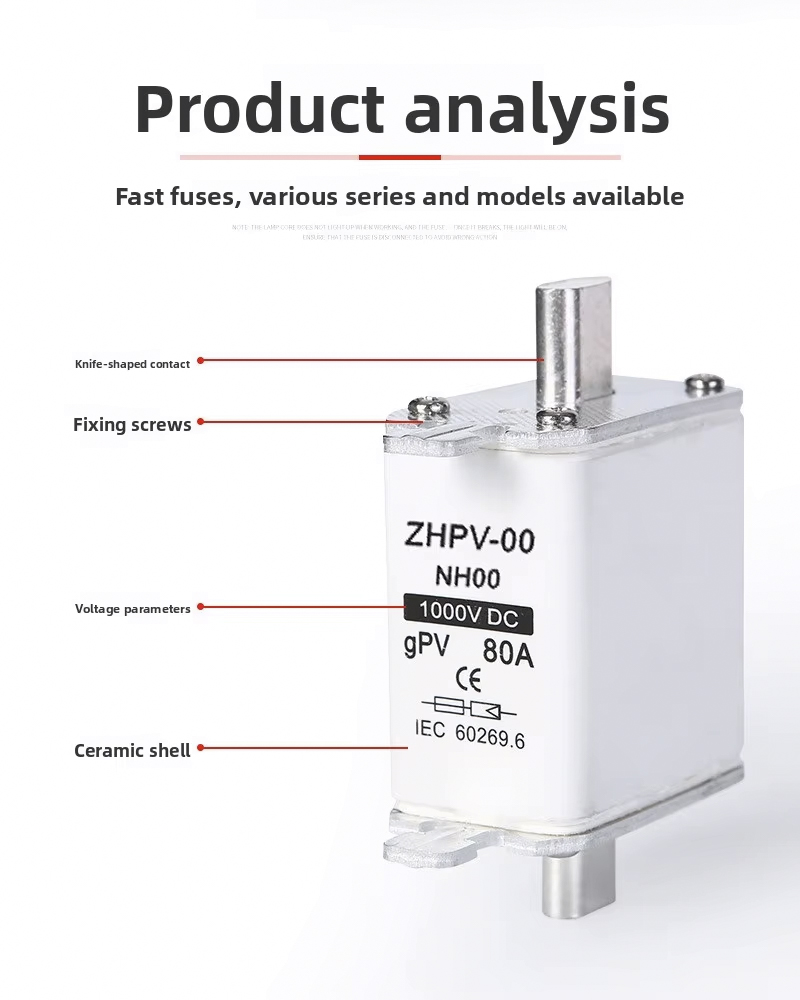 Le fusible à couteau photovoltaïque basse tension NH00-1000V IEC en plastique 80A 6ka capacité de coupure est conçu pour une protection efficace et fiable des circuits dans les systèmes photovoltaïques et autres applications basse tension. Ce fusible de haute qualité fonctionne jusqu'à 1 000 V, avec un pouvoir de coupure robuste de 6 ka, garantissant une déconnexion sûre en cas de surcharge ou de court-circuit. Son courant nominal de 80 A le rend adapté à diverses installations photovoltaïques et panneaux de contrôle industriels.