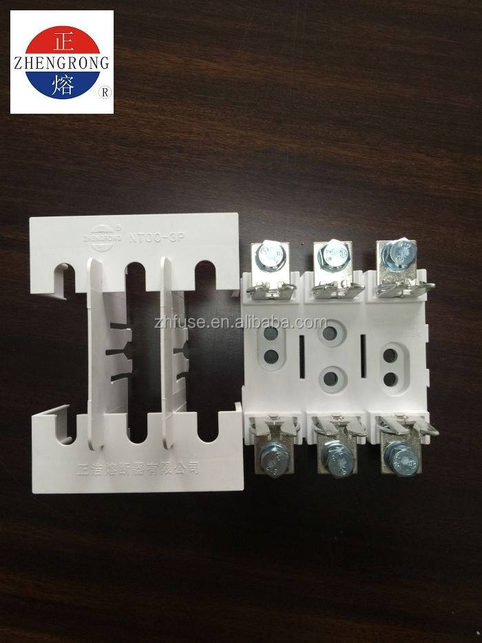 Cette série de fusibles se compose d'un lien de fusible et d'un titulaire de fusible. La base de fusibles NT00-3P est faite de revêtements de sol en céramique à haute résistance ou de revêtements de sol à haute température, avec des contacts statiques composites en forme de coin. Il s'agit d'une structure ouverte avec une bonne dissipation de chaleur, une résistance mécanique élevée, une connexion fiable et un fonctionnement facile. La base de fusibles NT00-3P est compatible avec cette série, et le fusible NH est utilisé pour éliminer le fusible de la base. La liaison de fusible en cuivre pur ou en argent (ou fil d'argent) est scellée dans un tube de fusion en céramique haute résistance.