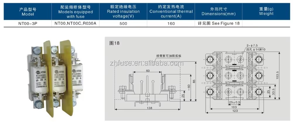 Zhenghao est à la fois un fournisseur, un fabricant et un commerçant, fournissant des services complets de personnalisation et de personnalisation de conception au niveau national et international. La base de fusibles NT00-3P est équipée de types de fusibles tels que NT00, NT00C, R030A, etc., avec une tension d'isolation nominale allant jusqu'à 500 V et un courant de chauffage spécifié de 160a.