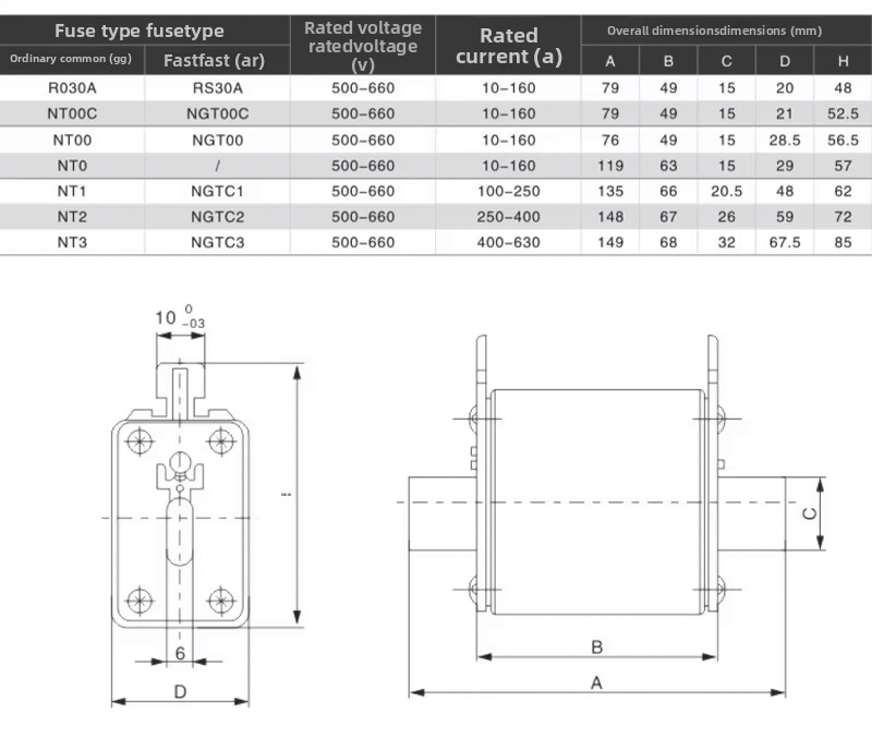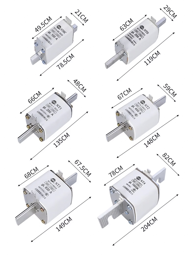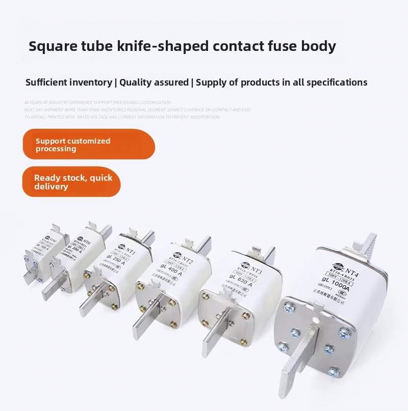 Les fusibles carrés en céramique de la série NT/NH sont couramment utilisés dans les équipements électriques industriels, les systèmes électriques et les équipements électroniques pour protéger les circuits contre les surcharges et les courts-circuits.