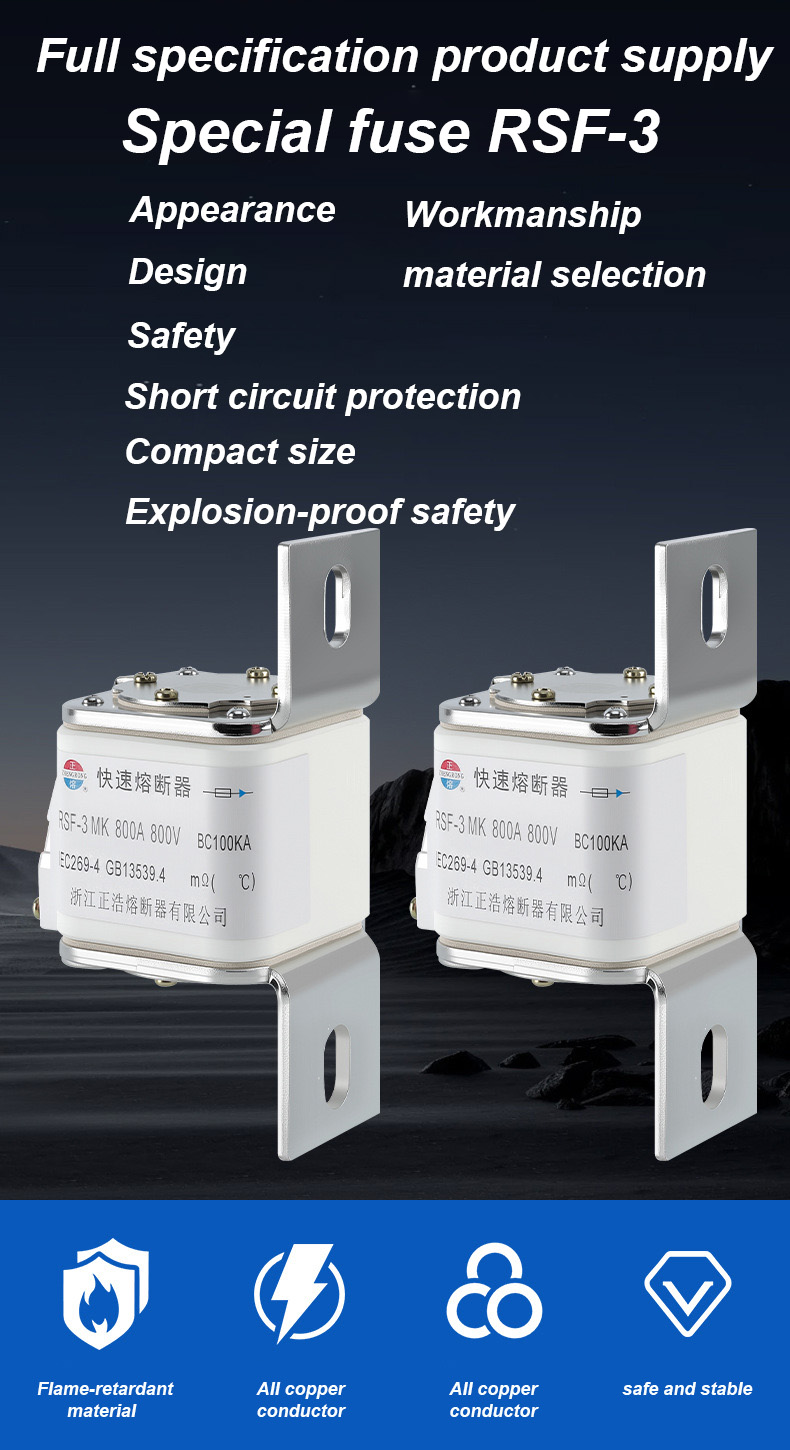 Les fusibles RSF-3MK 800V-800A BC100KA sont un disjoncteur industriel haute performance adapté aux scénarios de protection électrique de haute puissance. Liens de fusible RSF-3MK 800V-800A BC100KA
