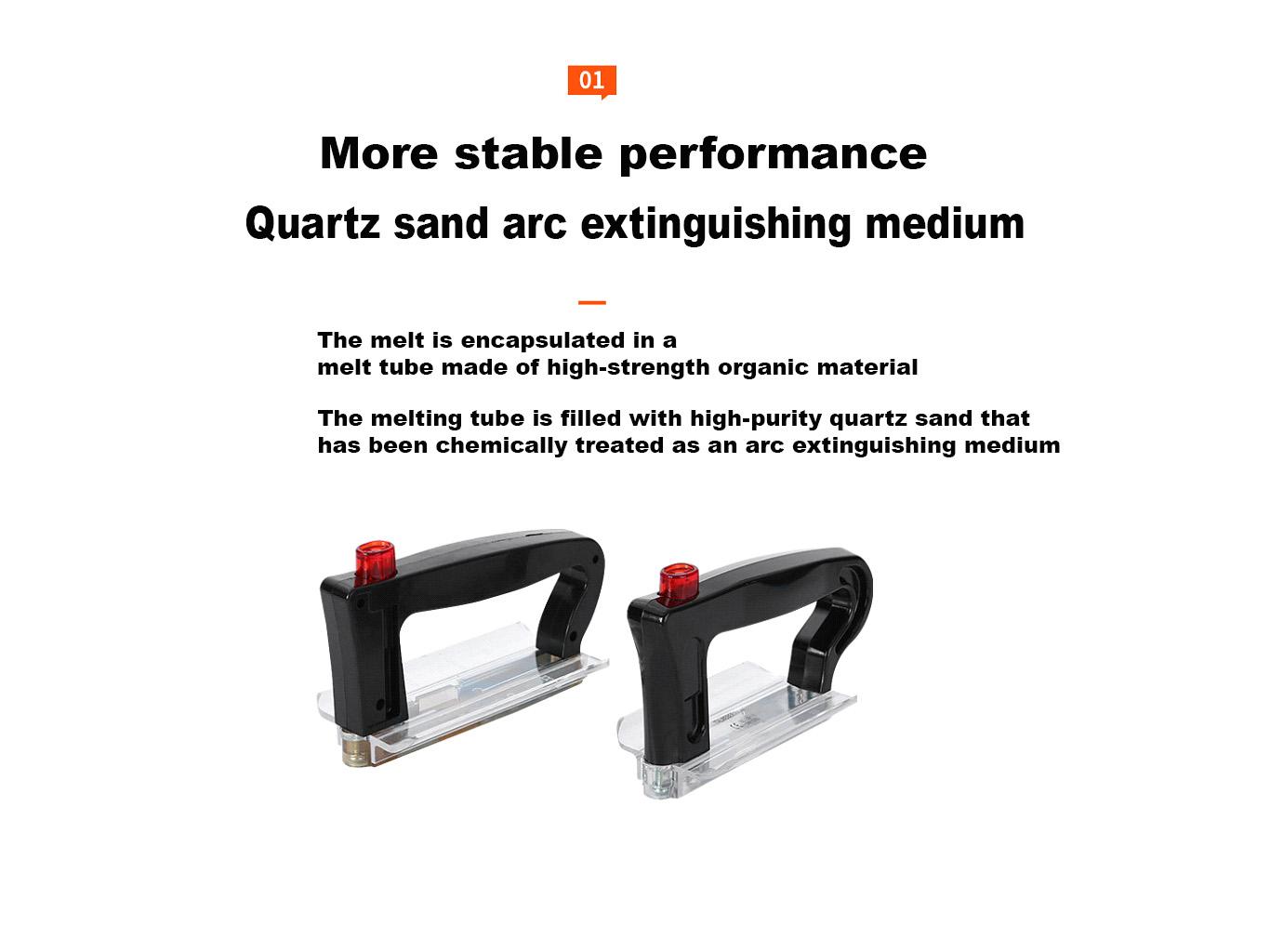Le fusible RT16-00 (NT00) est composé d'éléments de fusibles transversales variables en argent ou en cuivre pur, scellé dans une boîte en céramique résistante / résistante à la chaleur. Le tube de fusible de RT16-00 (NT00) est rempli de sable de quartz de haute pureté traité chimiquement comme milieu d'extinction d'arc. L'ensemble de fusibles de soudage au comptant sur les contacts plaqués en argent assure des canaux électriques fiables dans n'importe quelle application.