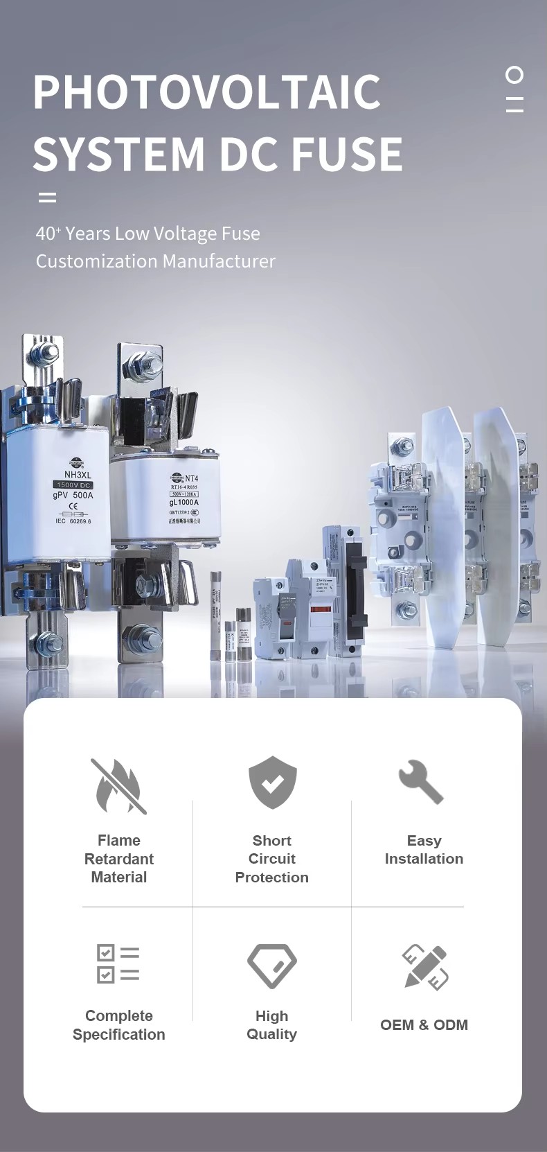 Pour des demandes de renseignements sur le fusible DC photovoltaïque, le fusible cylindrique, le fusible carré BS88 ou la liste de prix, veuillez nous laisser votre e-mail et nous serons en contact dans les 24 heures.